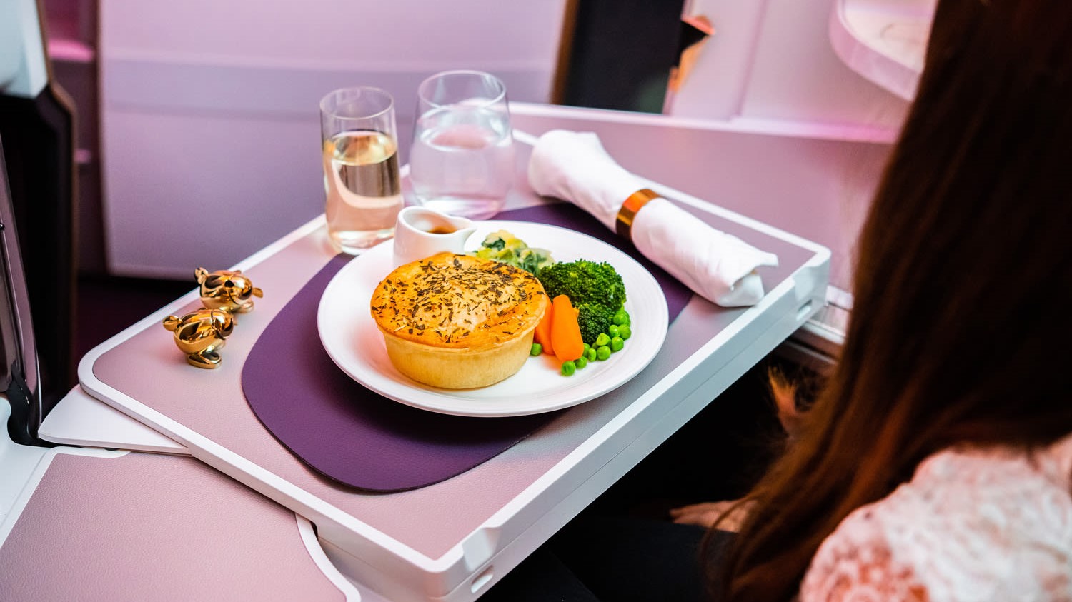 Premium customers can choose between spinach and ricotta tortellini with sage butter sauce and roasted pumpkin or chicken pie with caper panko crumb. For dessert, they can order a passionfruit and mango cheesecake garnished with coconut.