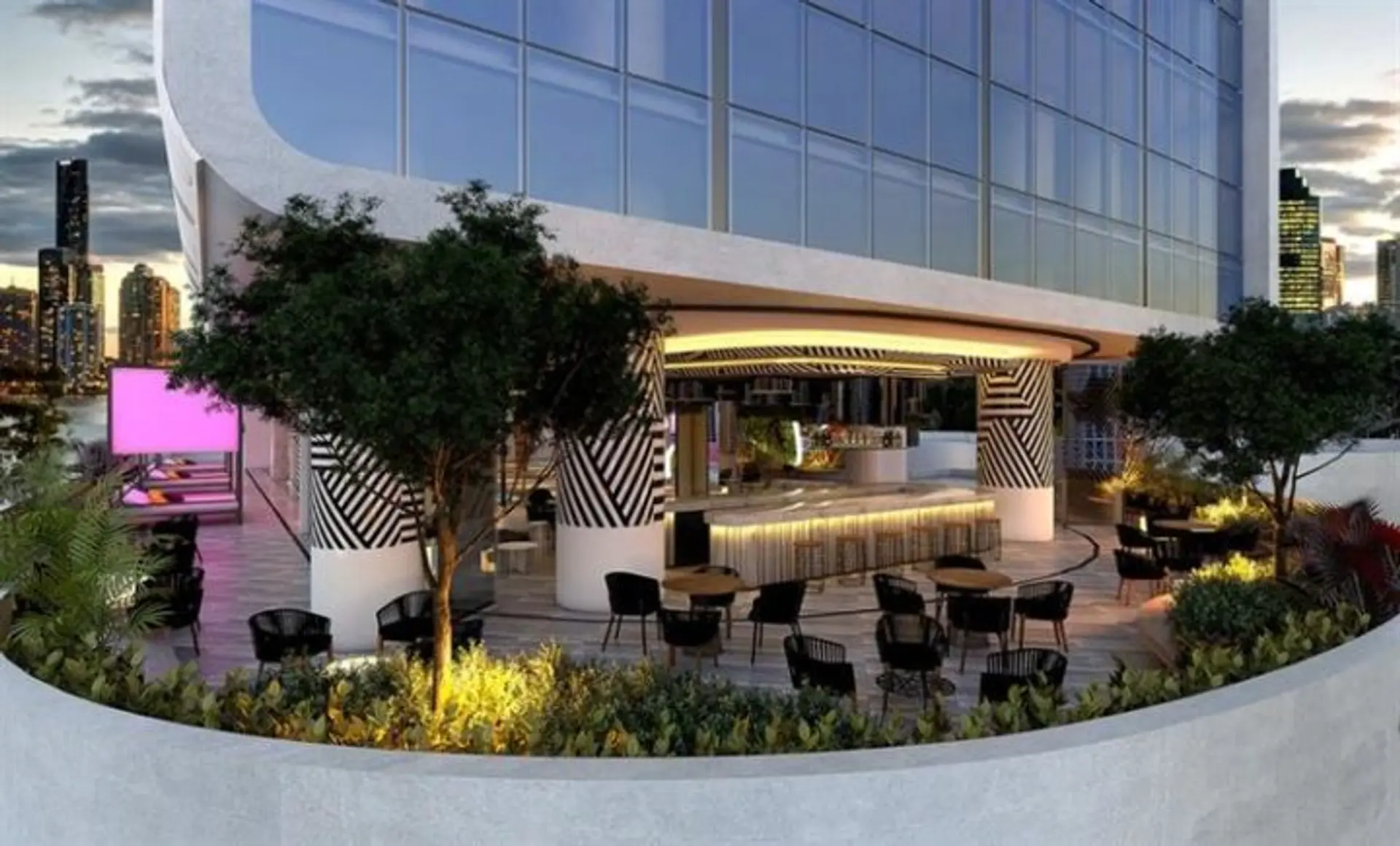 Benchtops and bar faces are upgraded with forms that recall curvilinear shapes and nearby waterworn clifftops. All rooms and suites are designed with a white wall inspired by VJ wall panels typical of Queenslander homes, while the Extreme Wow suite on the 33rd floor boasts an impressive backdrop of panoramic views.