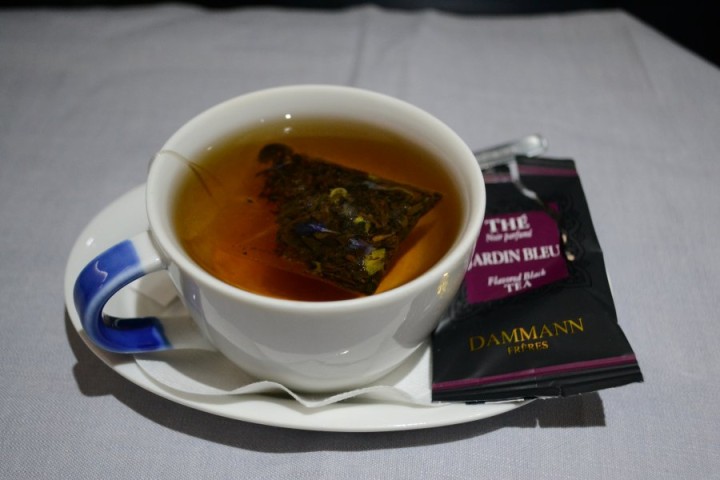With the cheese came also desert, which was ice cream or pear tart. SAS also serves a surprisingly broad selection of tea (not just English Breakfast, but also different green teas, Earl Grey and Jasmin). Again, considering that this is a flight to Asia, you would expect a broad tea selection. Everything tasted very good, in particular the tart.