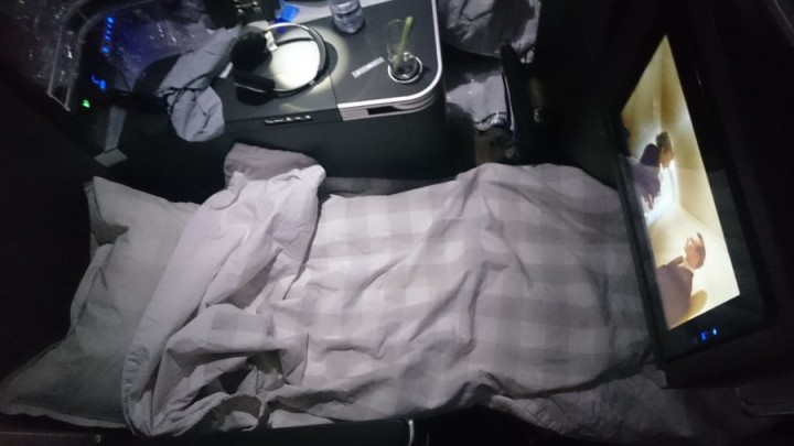 After all this excessive gluttony, it was time to relax and try to get some rest. SAS new business class cabin has fully flat seats. SAS has teamed up with Swedish company Hästen to provide a seat cover to give extra comfort which I think is a very nice touch and definitely fullfiled its purpose. Bedsheets and cushions are also provided by Hästens. The bed is almost 2m long and wide enough so that I could sleep on my stomach at least for a little bid.