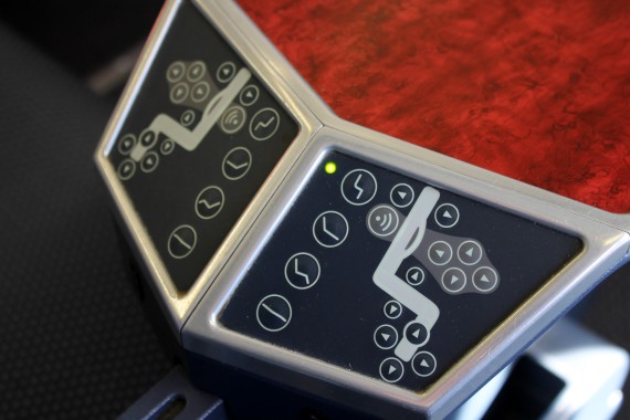 Fjernkontrollen for underholdningssystemet er plassert i nedkant av cocktailbordet og kan tas løs ved å trykke på en knapp. Ved siden av bordet finnes og setekontrollen med flere knapper som justerer setet i flere forhåndsprogrammerte hvilestillinger og for å legge setet helt ned. Man kan selvsagt justere setet til ønsket posisjon ved en rekke piltaster.