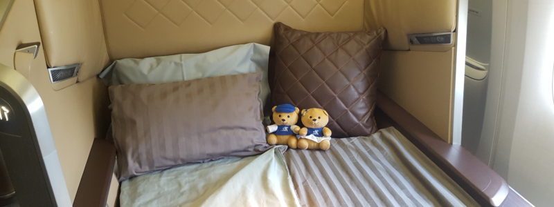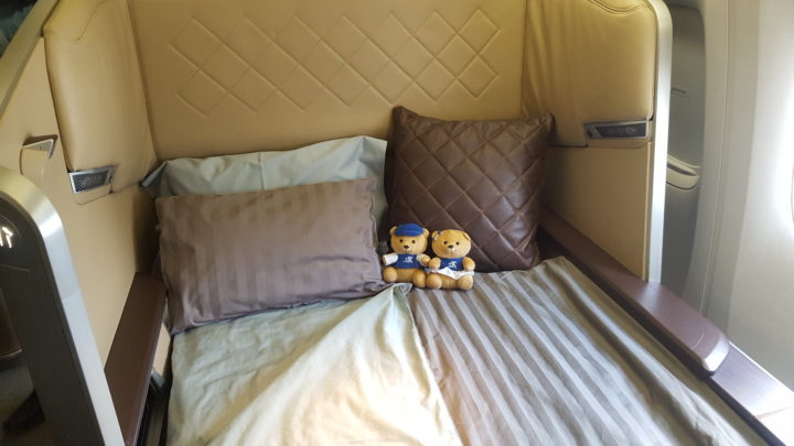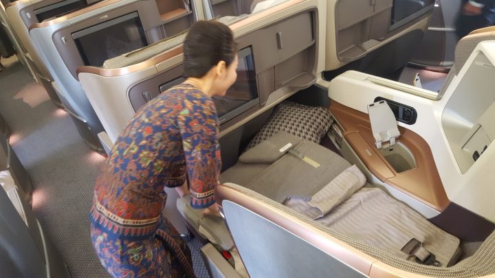 Her får du et utvalg bilder fra kabinen samt en liten instruksjon som viser hvordan sengen i business class res opp.