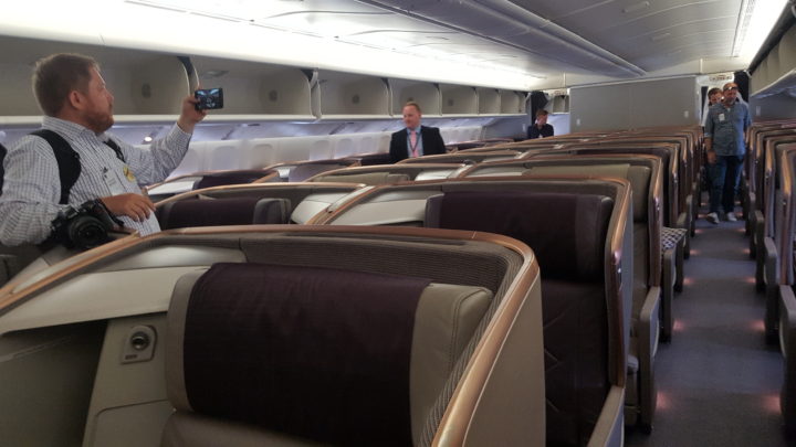 Businessclass var til stede når Singapore Airlines bød på innvielsesfestivitas i forbindelse med at de fra i dag setter inn en Boeing 777-300ER istedet for den noe mindre 77-200. Det betyr bedre pasaassasjerkomfort og ikke minst introduksjon av Premium Economy og ikke minst First Class. En nesten fullsatt SQ351 tok av fra Kastrup ved 12:30 tiden og er øyeblikket godt på vei mot Singapore. Hele økonomi er fullbooket, og det var få seter ledig på Premium Economy og Business Class. First Class hadde også 50 prosent belegg med to passasjerer kunne Allan Hoffery fra Singapore Airlines fortelle.