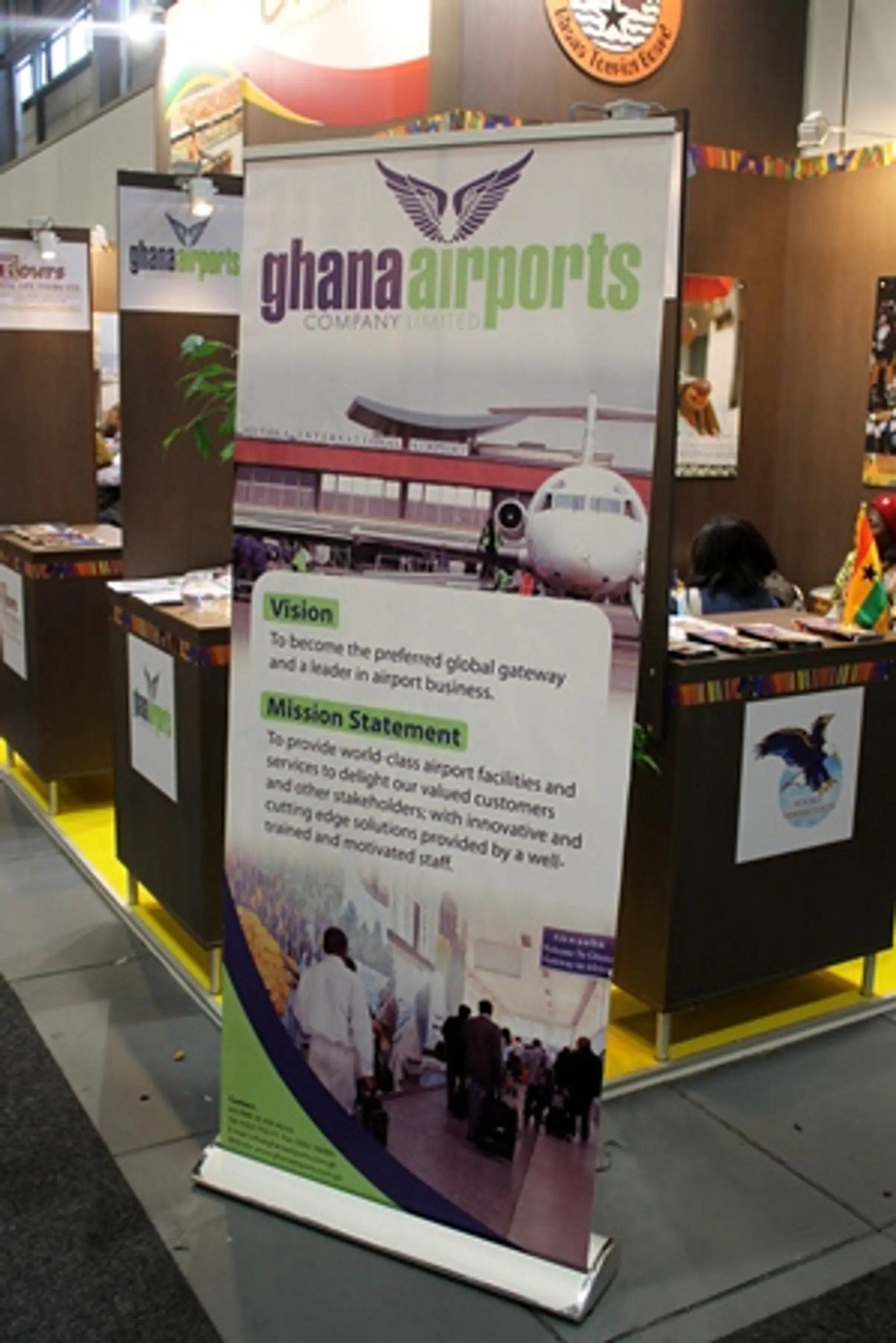 Berlin Brandenburg Flygplats Av de betydligt mer udda utställarna kunde hittas Ghana Airports Limited som ville marknadsföra Ghanas olika flygplatser.