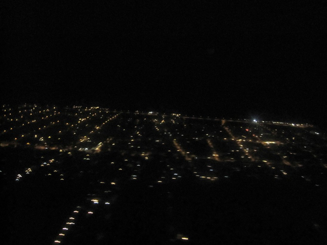 Efter en video med säkerhetsrutinerna ombord lyfte vi vid 21-tiden från bana 08 och efter en skarp högersväng fick vi en fin vy över ett skymmande Arlanda.