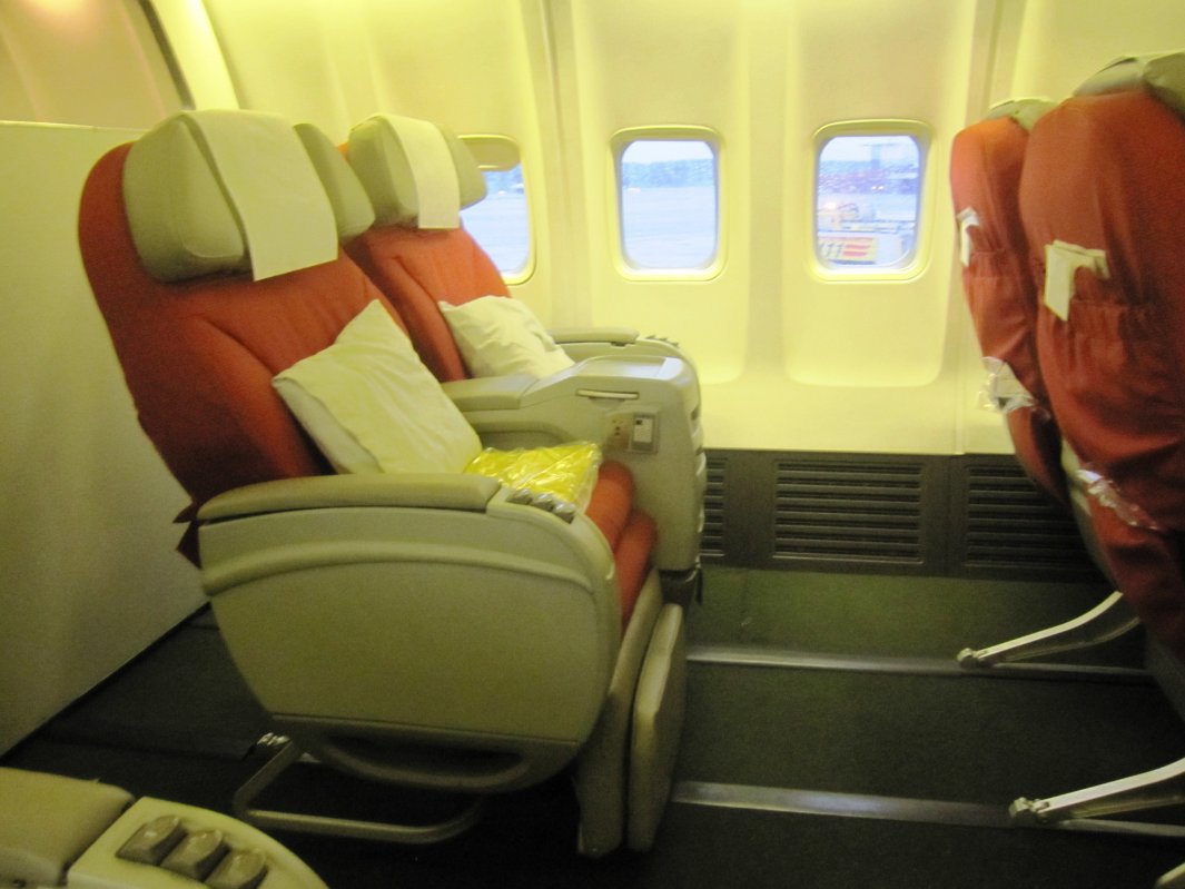 Trots att stolen var något gammal tyckte jag den var bekväm och den gick att fälla en bra bit bakåt. Benutrymmet var det inte heller något fel på, drygt 57" i benutrymme, vilket är ungefär vad exempelvis SAS har i sin business class på långflygningar. På en ordentlig långflygning på 10-12 timmar hade stolen dock känts gammal i jämförelse med vad andra flygbolag erbjuder.