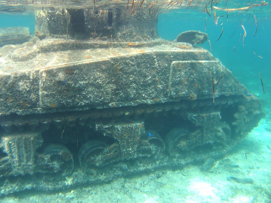 Söder om Garapan ligger de stränder där amerikanarna landsteg. Ungefär 300 meter utanför Kilili Beach ligger två Shermanstridsvagnar i vattnet. När jänkarna landsatte sina trupper vid invasionen hade de räknat fel på tidvattnet och de två första vagnarna som rullade av sjönk i vågorna. Besättningarna fick vada i land. De ligger på en runt 2 meters djup och det var väldigt häftigt att snorkla ut till dessa. Plötsligt dök en gigantisk stingrocka upp och simmade förbi oss på några decimeters avstånd. Vi var i princip helt ensamma på Kilili Beach (som vanligt?).