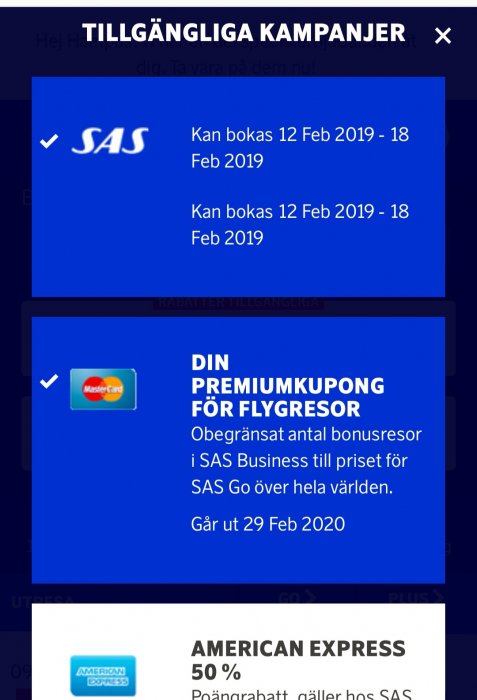Den översta där det står SAS, är väl egentligen endast själva kampanjen som går ut 18 februari och den under är själva rabatten.Konstigt, dom måste ha täppt till det.