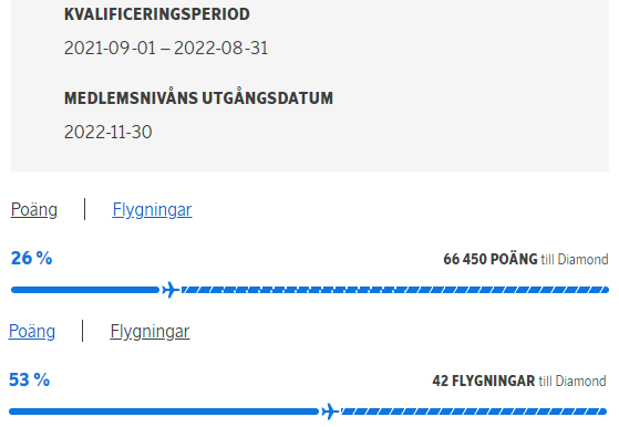 4x statuspoäng på SAS Oktober 2021 - Januari 2022
