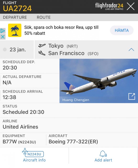 Vilken flight då? Inte från NRT till LAX/SFO vad jag kan se, bara Business på de 77W / 789 som går därifrån.