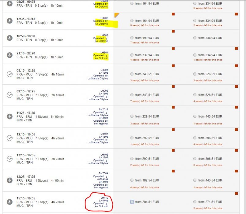 Just Air Dolomiti är lite svårt eftersom de flyger både s.k. Wet-lease åt Lufthansa samt att Lufthansa erbjuder code share på andra sträckor.