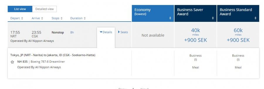 Har hittat en väg: 29 dec Fra - Hnd LHF, 30 dec NRT-Jakarta NH (ANA) C 787-8, 31 DEC Jakarta - Bangkok Thai C A330