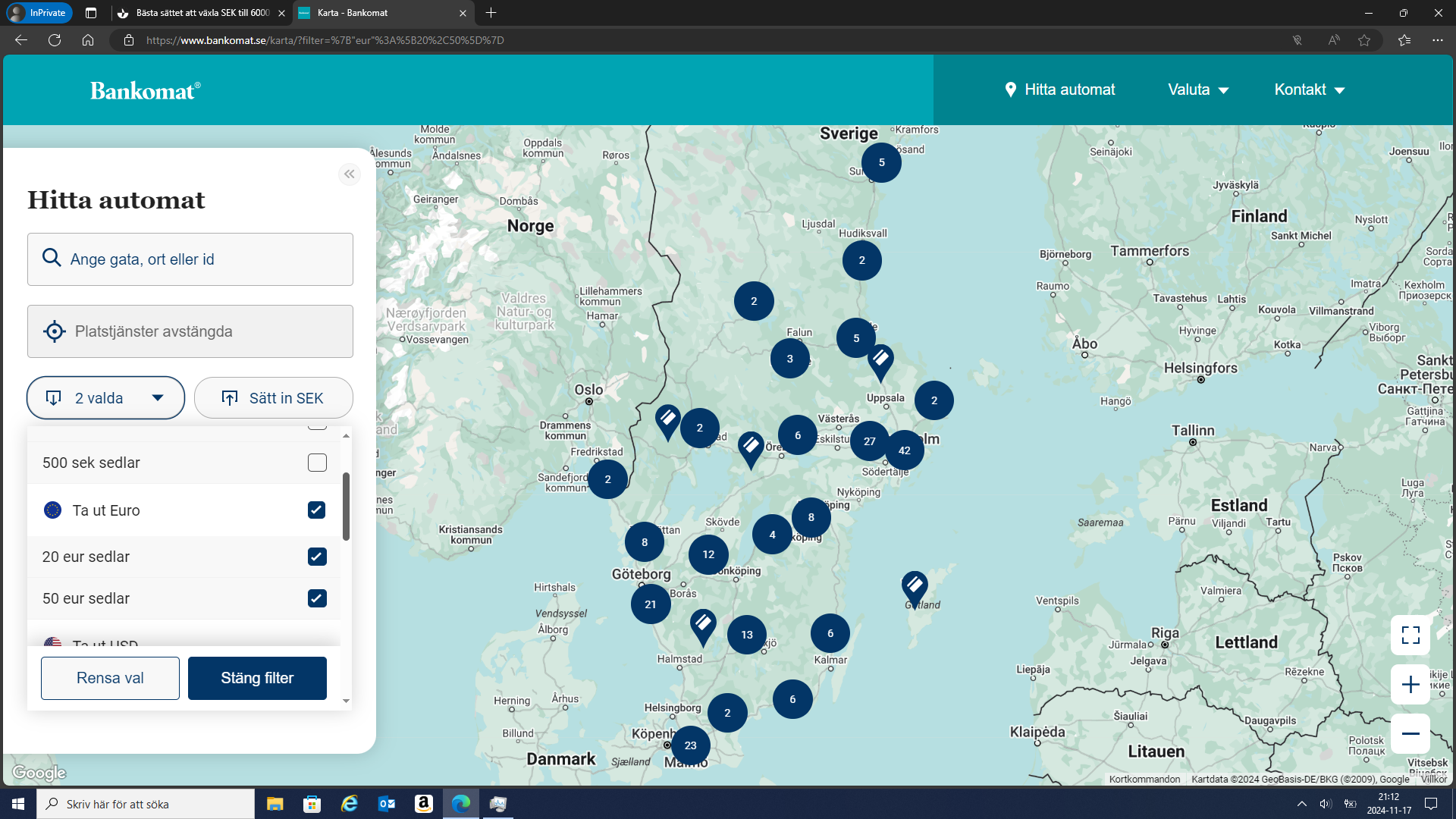 Wise + Revolut + andra liknande kort --> växla SEK --> EUR och maxa ATM-uttag per dag per kort i EUR-land i vanliga bankomater.