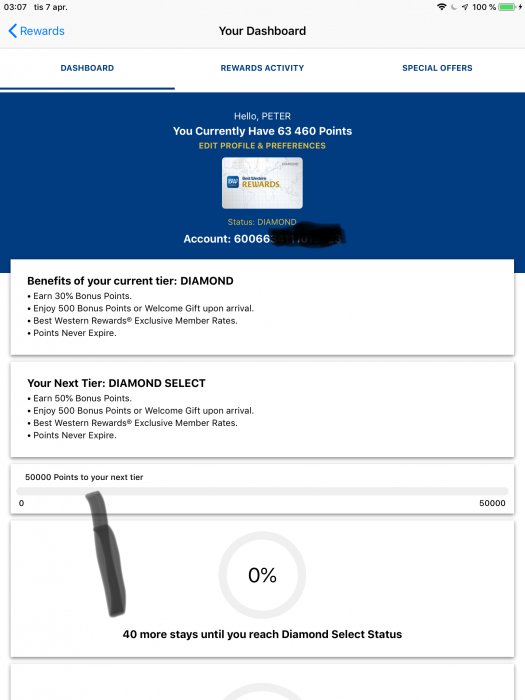 Såg idag att jag blivit nedgraderad till Platinum från Diamond, som jag tidigare matchade från Hilton Diamond (som nu förlängts till 2022).
