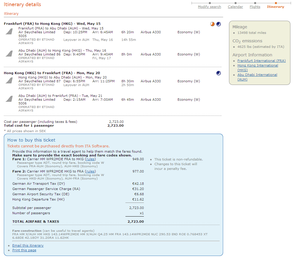 Bästa jag hittar är runt €500 i economy. Fast hela dealen är i economy va? Då är det inte jätteintressant imho.