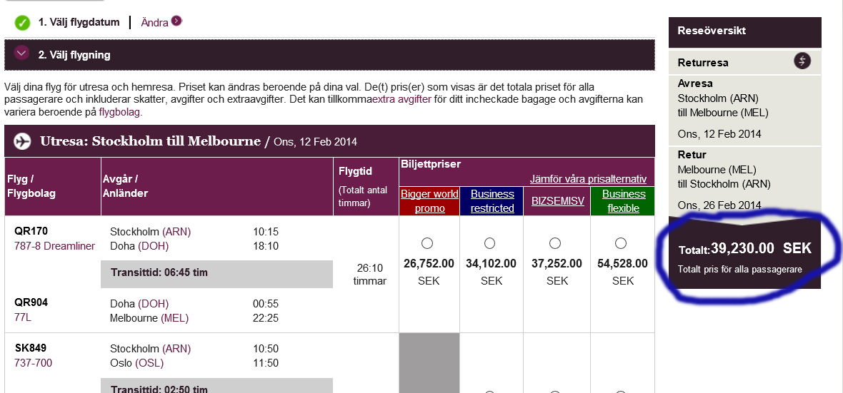 [Business Class] Qatar Airways Superrea från Sverige/Norge/Danmark