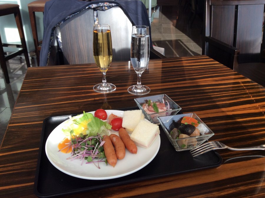 Har lite frukost på JAL First Class Lounge på Narita flygplatsen i Tokyo.