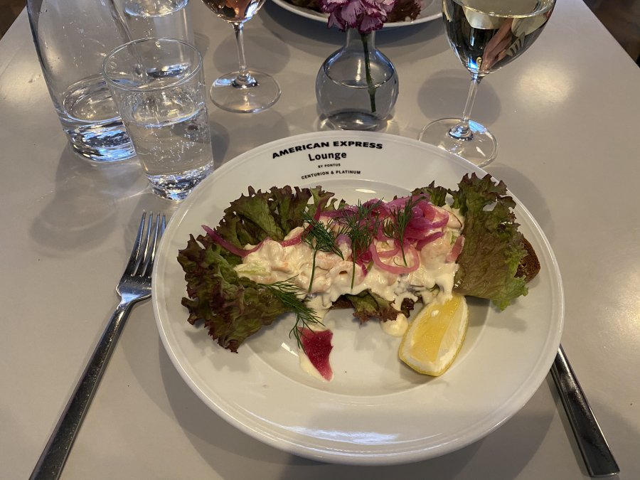 Guld-loungen på Kastrup. Fler människor idag än vad det brukar. Frukten till yoghurten slut, frallorna slut (fick bli "bröd som alla fingrar på när man måste skära det själv"-bröd) men baristan jobbar på, underbart!
