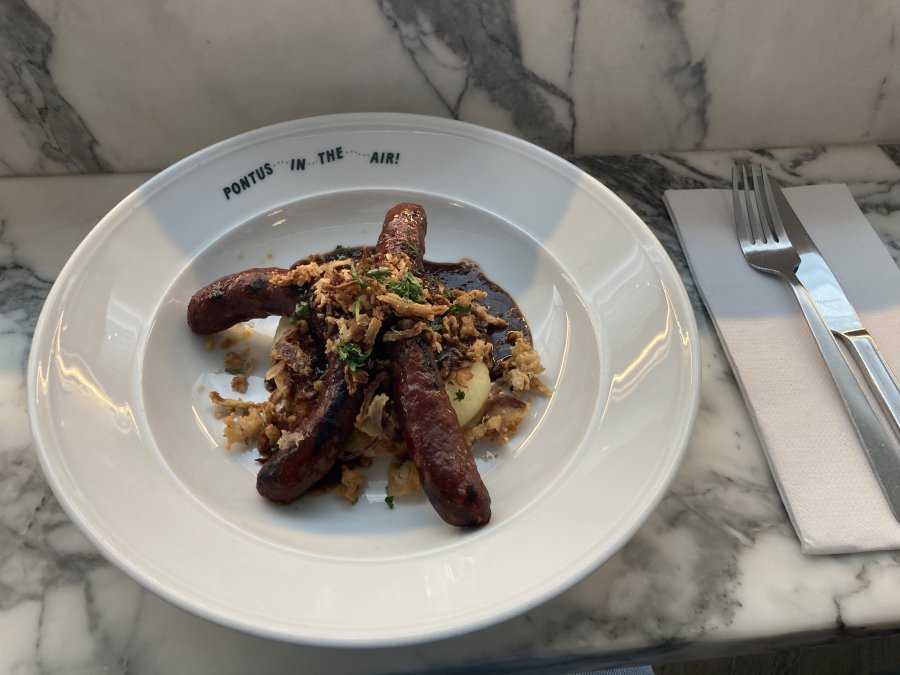 Arlanda, god lammkorv på Pontus, med mos och massor av rostad lök.