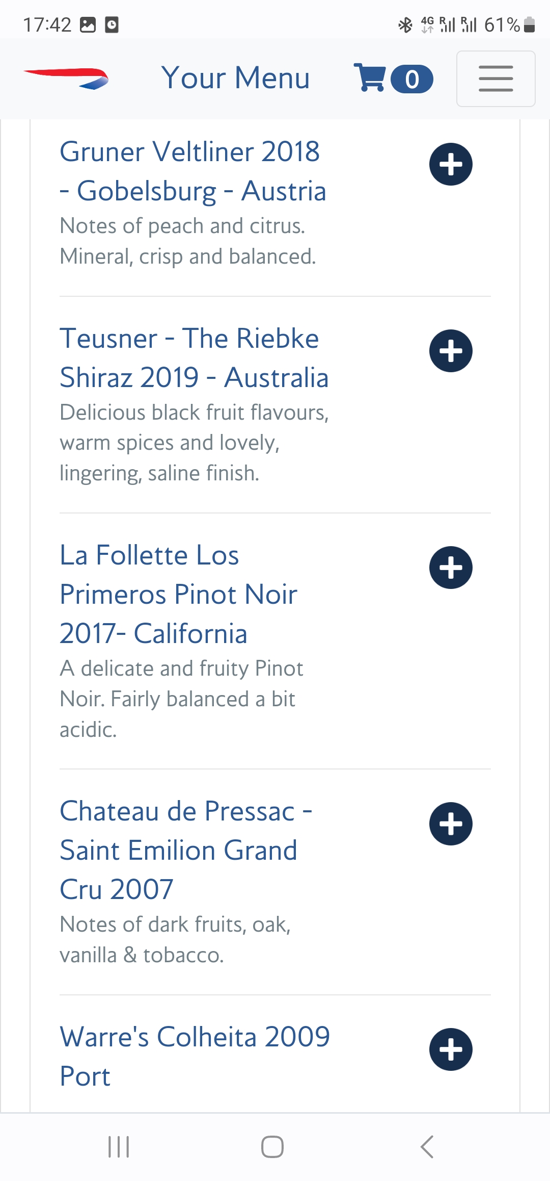 Portvinet och den amerikanska Pinot Noir'en.Länge sedan jag var i Galleries First på LHR T5 nu. Det har gjorts om med bordsservering på en massa saker (QR kod vid borden).