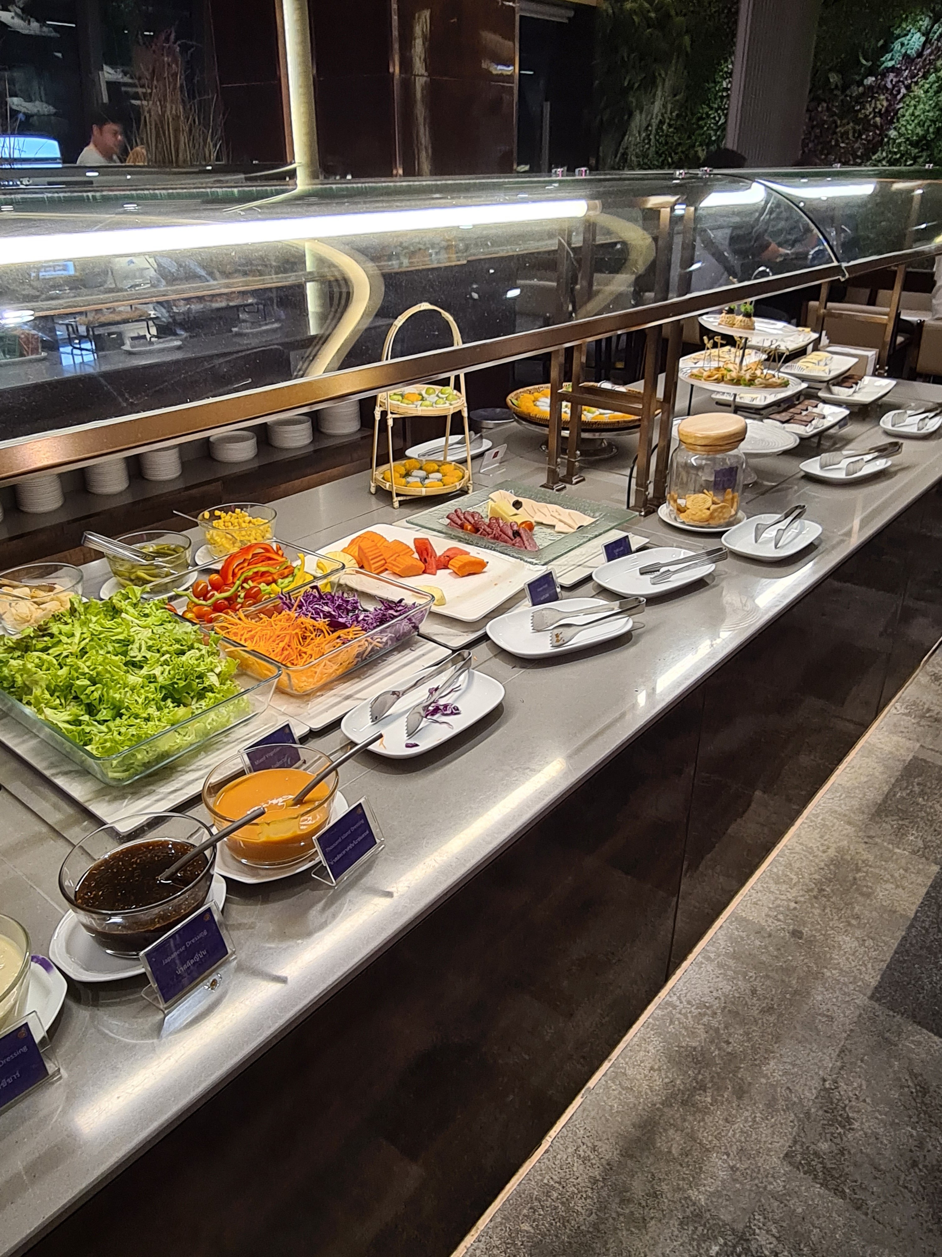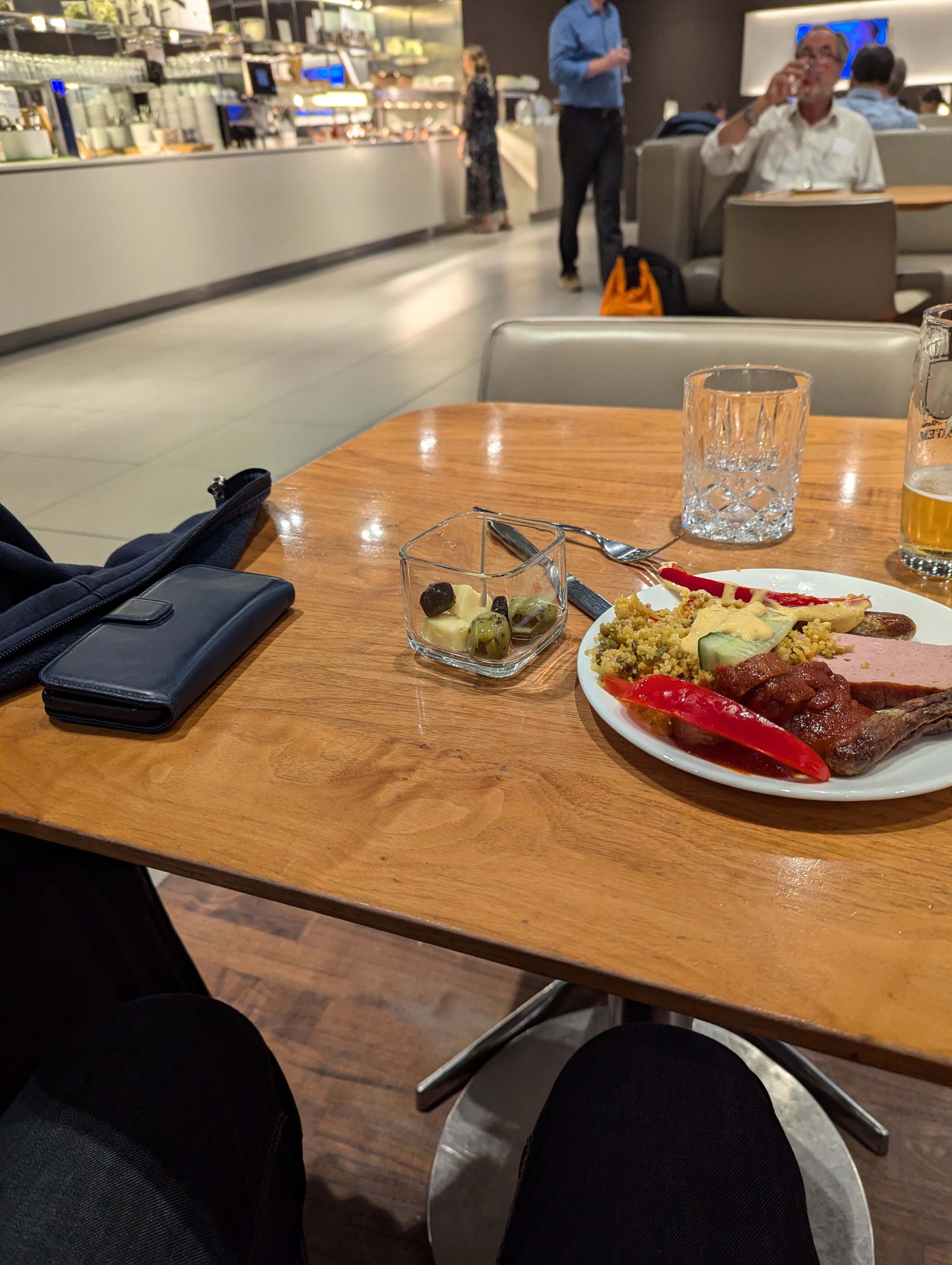 Nu besök I THai:s Prestige Lounge BKK. Det märks att THAI är på grön kvist. Mer matutbud än tidigare. Möjlighet till a la carte. Och nu även champagne! Samma märke som i Silverkris loungen. Mycket folk som det brukar vara den här tiden. Alla europaflighter ska ju iväg nu snart.