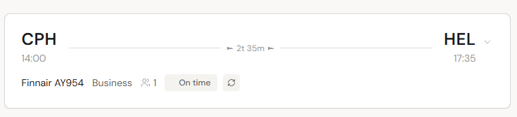 Efter att ha raderat alla spökresor, importerat returen igen och slagit ihop de två bokningarna till en gemensam resa uppdaterades antalet resenärer för resan från 1 st till ett större antal. Värt dock att tänka på diverse specialfall kopplat till detta, för i mitt fall är bara en delmängd av personerna med på returen. Systemet verkar försöka lista ut antal pax för hela resan vilket ju är föredömligt, men tyvärr blir det en person för mycket. (Behöver nog matchas namn och se hur många unika namn som finns på olika bokningar som ingår i en resa, och det verkar inte funka fullt ut, då det verkar som att suffixet "(BARN)" missas i det ena fallet.) Antalet bokningar står också felaktigt som 4 st (i stället för 2 st). Avses egentligen antal flyg eller antal bokningar här?
