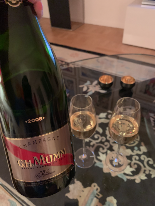 Jag startar detta veckoslut med att dela en flaska Mumm 2008 ihop med Lord Brett Sinclair. (Den har precis korkats upp så får ge den en stund att bli något varmare innan vi börjar dricka).