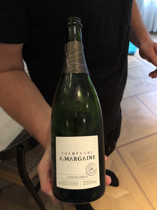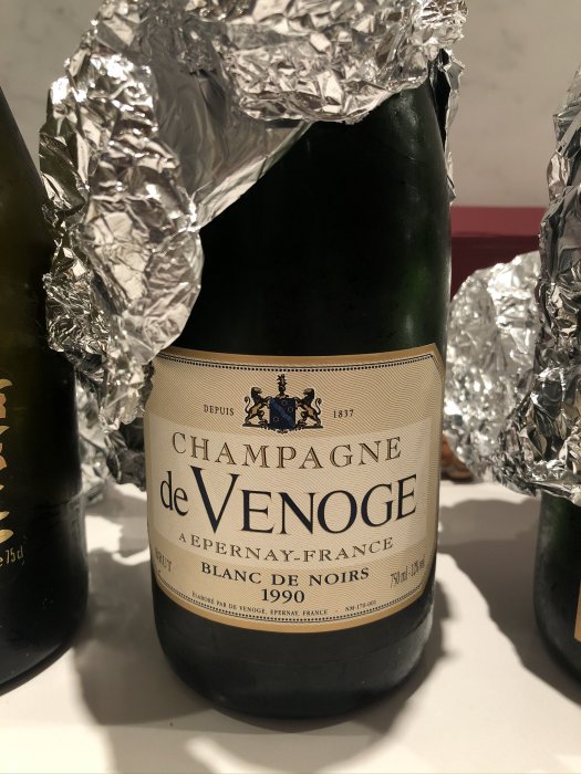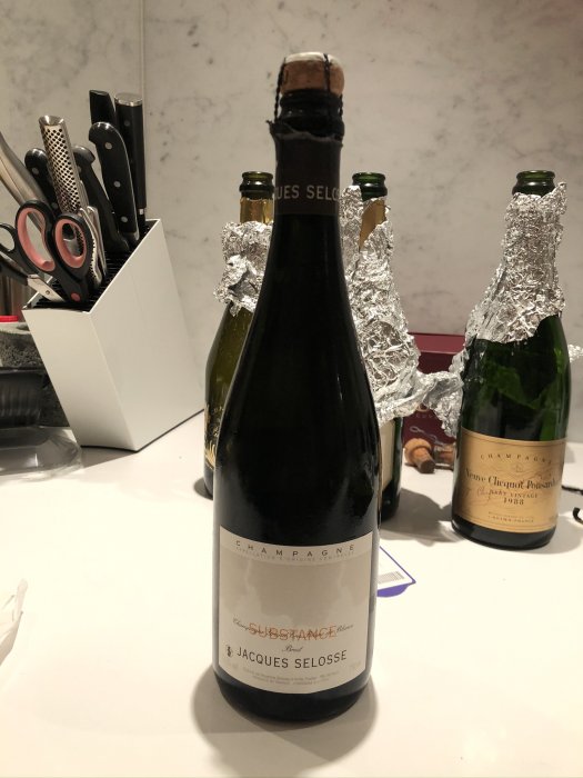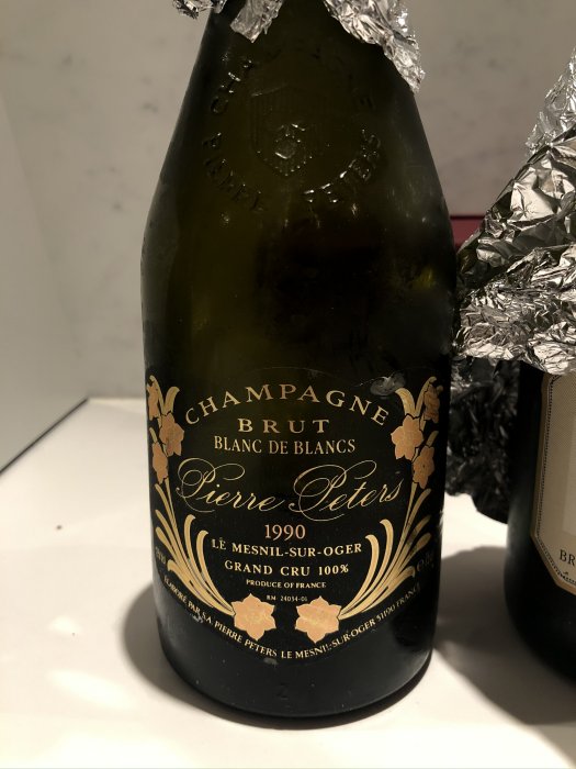 Frågan är skickad till Olivier Krug för kommentar. Oerhört häftig och välutvecklad champagne som ändå hade en del bubblor kvar, fullkomligt exploderade i munnen, doft och smak av rostat kaffe och karamell.
