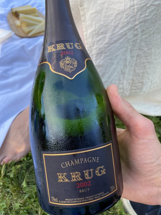 Fantastiskt trevlig champagnepicknick igår. Inledde med en trevlig enklare champagne från Jacquart (inte det stora kooperativet som säljer medelmåttig champagne utan den lilla odlaren André Jacquart). Är perfekt att inleda med.Visa bifogad bild 119520Gick sen vidare till mer tyngd, hade hört att 2002 mognar ganska tidigt och får säga att denna är redo att dricka, kan dock säkert sparas 10 år till men efter en 30 min eller så öppnades den fantastiskt.
