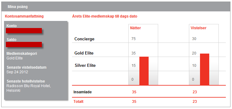 I Radisson Blu Royal Helsingfors igen... Som standard fick jag upgrade men också 2 st drink biljetter till Lobby Baren. Såg att CC har ändrat lite layout på deras medlemssida. Jag gillar denna förbättring.