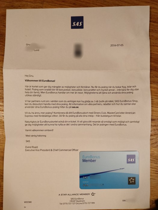 SAS envisades med att man måste ange namn och adress för att få använda WIFI. Den här resenären vandrar mer än den flyger, så kanske det var lite onödigt att SAS skickade ut ett EBB-kort.