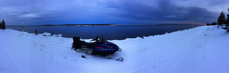 En liten tur i soluppgången... Bra is i inre skärgården. På yttersidan bröts isen upp här om dagen i stormen så där är det snösörja och öppet vatten.