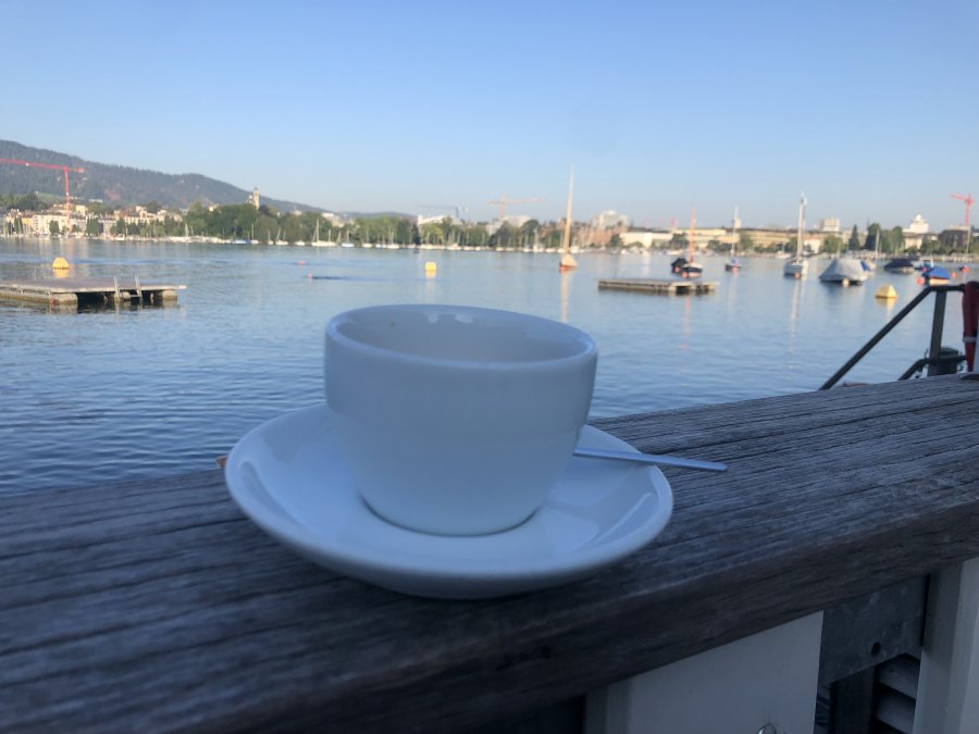 Jag började morgonen på Hilton Zürich Airport kl. 05:15 med ett träningspass. Sen ett första kundmöte IRL på 18 månader. Vi valde att sitta ute på Seebad Utoquai med en kaffe. Balsam för skälen på alla sätt.