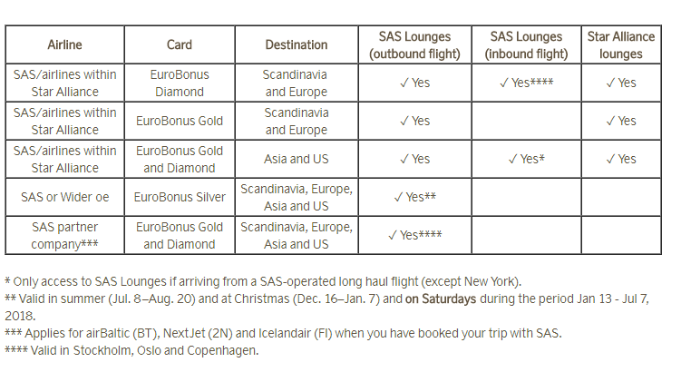 Kolla här: Lounge access - SAS där nedanstående tabell finns.