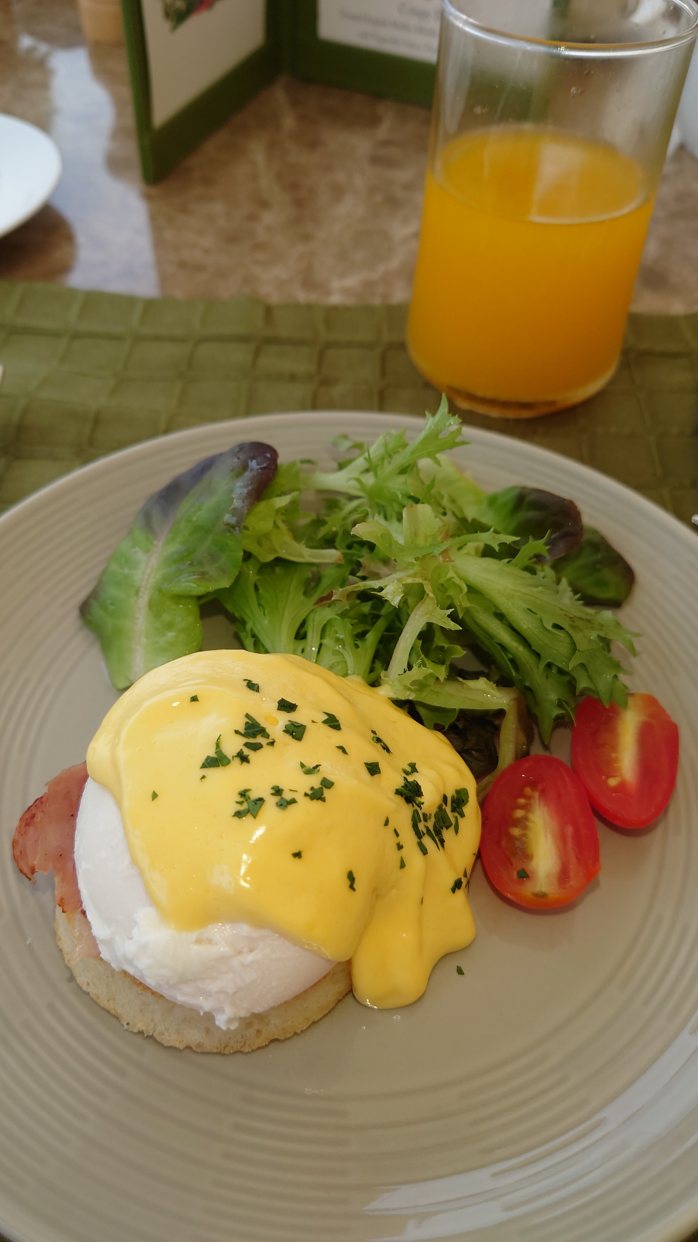 Eggs Florentine skall inte ha lax, det skall alltid vara sauterad spenat, och kan ha kanadensiskt beacon eller inte. Men ingen lax (det är Royale).Här är först Eggs Florentine från IC Barcelona