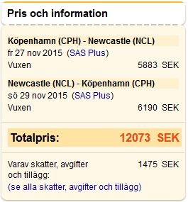 Funderade på att ta en liten avstickare till Newcastle i helgen. SAS har ju en direktlinje med perfekta tider för en weekend. Så glad i hågen surfade jag in på sas.se. En minut senare hade jag kommit på andra tankar.
