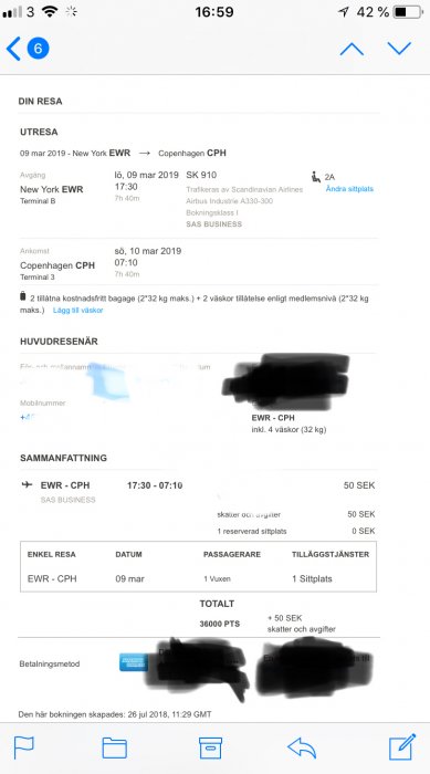 Nopes. 50 sek bara. Tyckte med det var sjukt billigt. Aldrig bokat enkel från USA innan så trodde det hade med det att göra....
