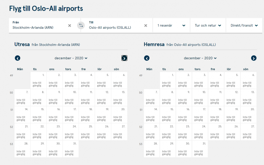 Norwegian har för närvarande en beläggning på ca 50%, detta berör runt 600 resenärer från Arlanda och lika många till Arlanda