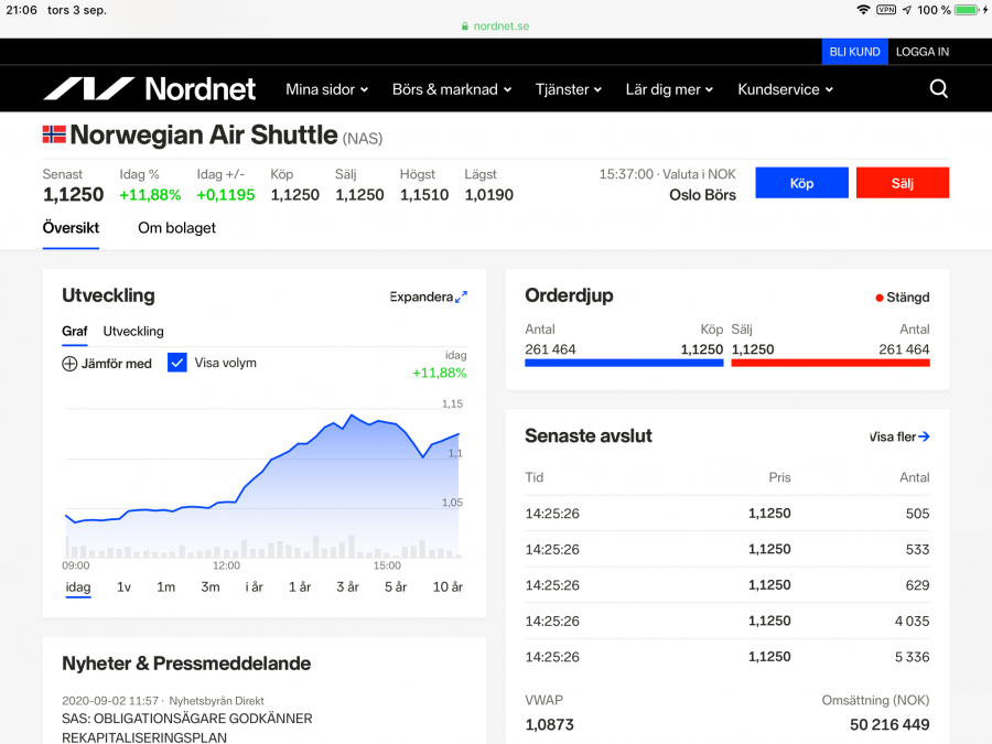 Att staten kanske ska hjälpa demVisa bifogad bild 112952 Ja, kursutvecklingen på Norwegian är svår att förutspå ”rusade” idag med 12%