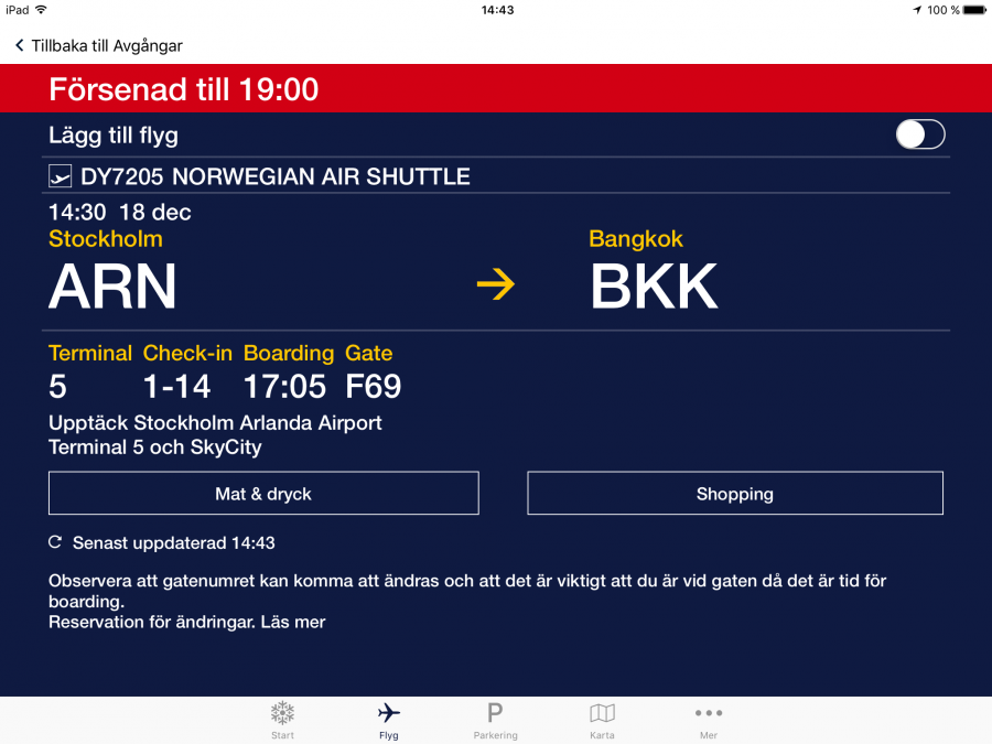 Beror på att DY7006 är försenad från New York landar 15,30 knappt 4 timmar sen.