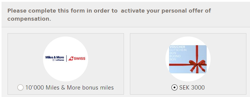 Efter en stund kom Pursern förbi, beklagade det inträffade och gav mig en papperslapp. På den finns en kod som jag kan använda för att antingen få 10 000 Miles & More-poäng eller en voucher på 300 CHF.