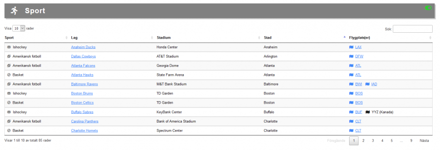 Alla lag är kodade med stadium och land, samt närliggade Star Alliance Flygplats, och återfinns via alla sökfunktioner på sidan.