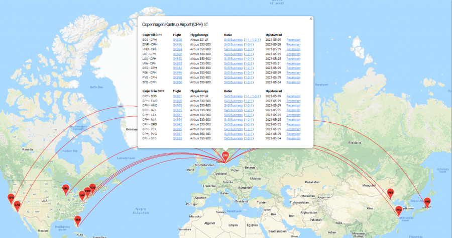 - Kartan återspeglar samma data som presenteras på SAS Business award flights - Travel hacks (i samarbete)