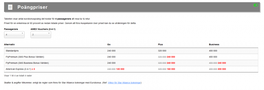 - Få hjälp med poänguträkningen, med elelr utan FlyPremium och AMEX vouchers.