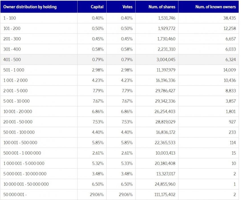 Varför killgissa när man kan leta upp fakta? Verkar vara lite drygt 3 000 ägare som har fler än 10 000 aktier.