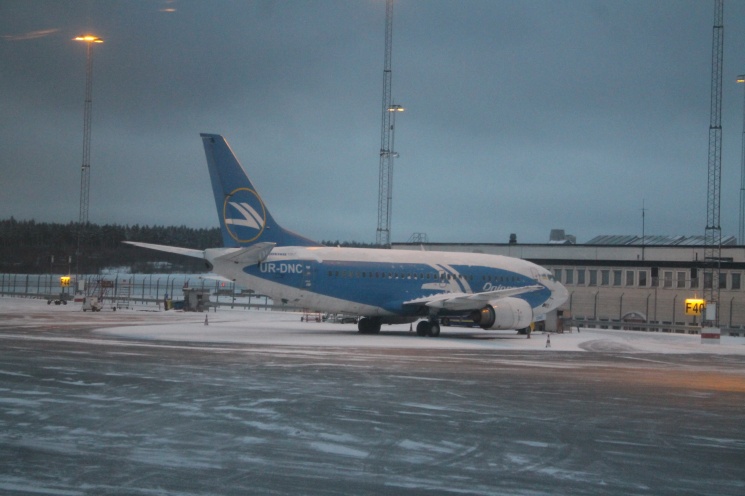 Och här är det strandade planet på Arlanda som ännu inte fått återvända till Kiev efter ett antal dagar pga obetalda fakturor. Ser ut att vara ett flygplan från Dnieproavia.