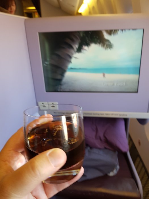 Ungefär min tanke också att jag sedan behövde en Cola är en annan sakHar varit med om att viss thai crew från Arlanda har fått för sig att det är olagligt att servera alkohol på backen (även i främre kaninerna) så därför nobben på skumpan.