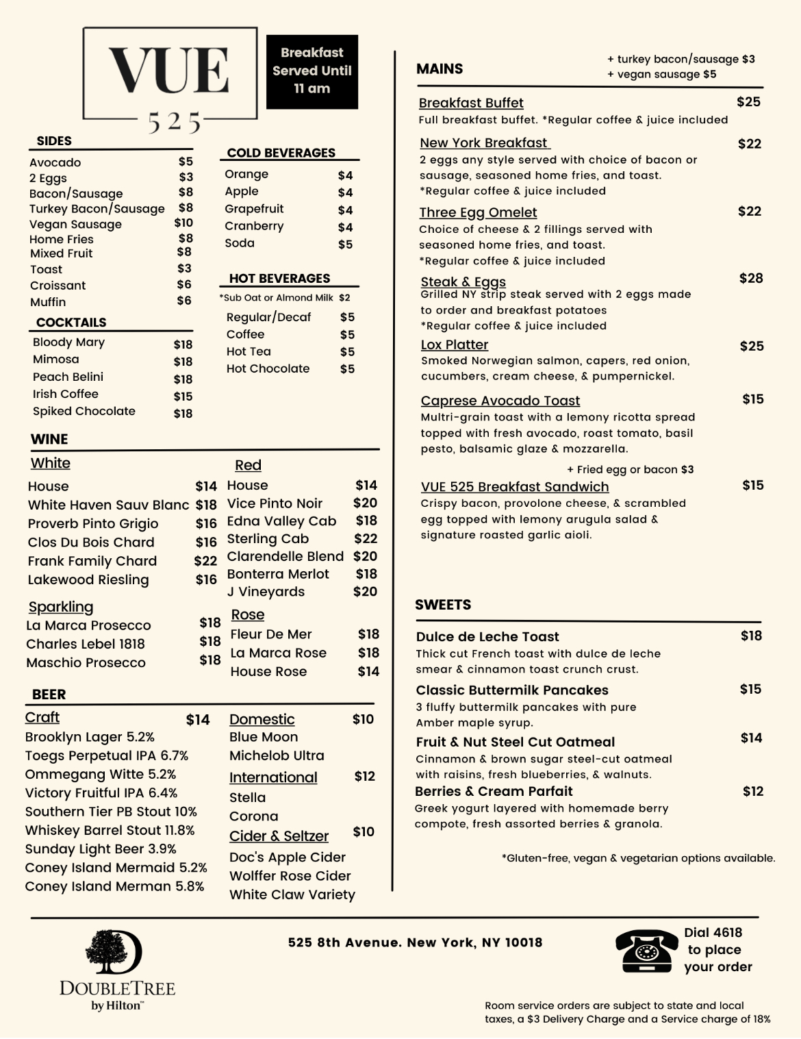 Dagens F&B-offering i New York, med betoning på B. I teorin ett bra koncept att plocka på sig valfria saker från menyn så att man kan ta vad man vill. I praktiken värdelöst när det är hittepå-priser, en flaska vatten av samma sort som man får gratis vid checkin kostar 5.75+tax+tips. På butiken rakt över gatan får man två flaskor för 50 cent.