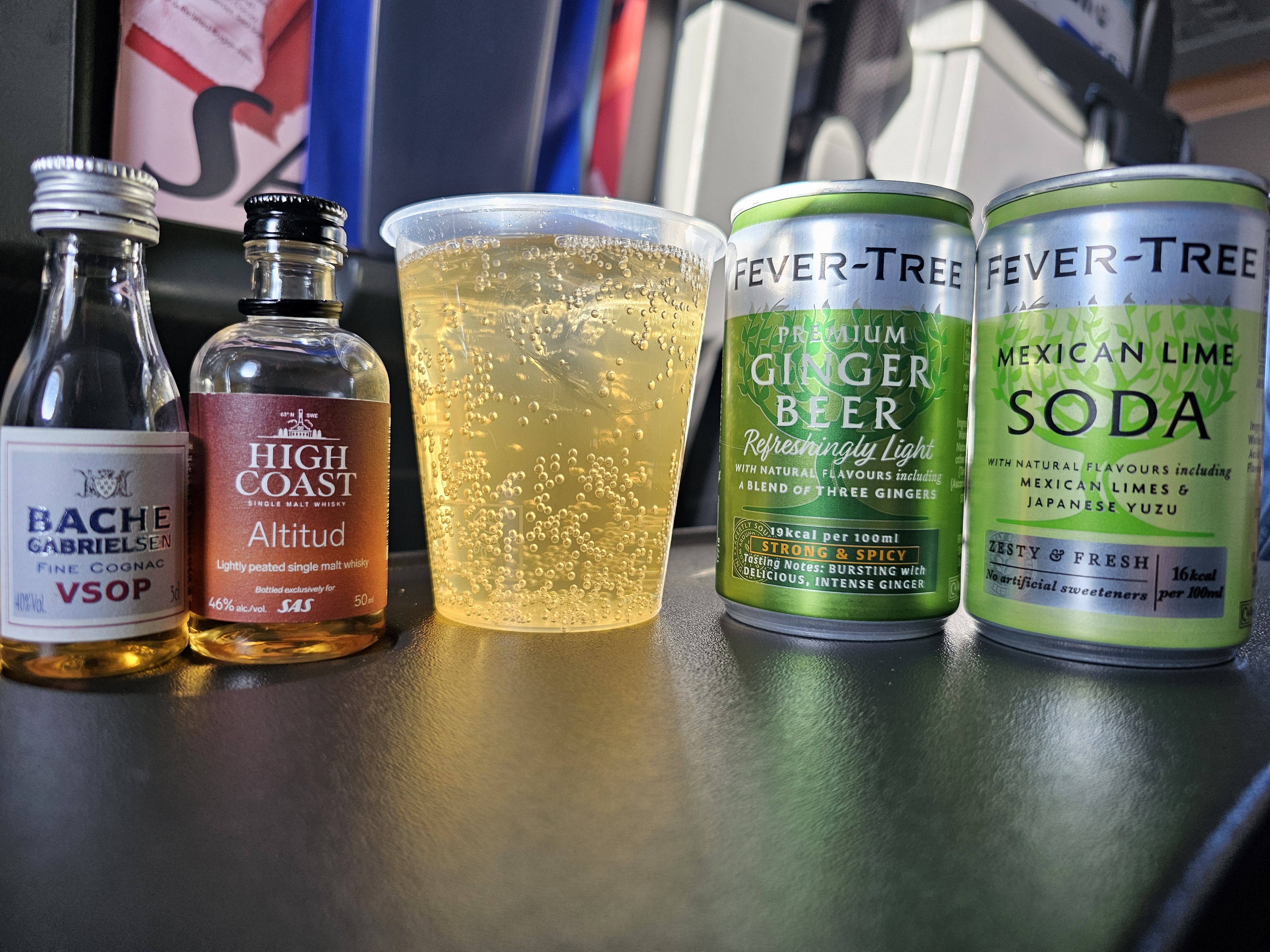Beställ cognac, whisky, ginger beer, Mexican lime soda.