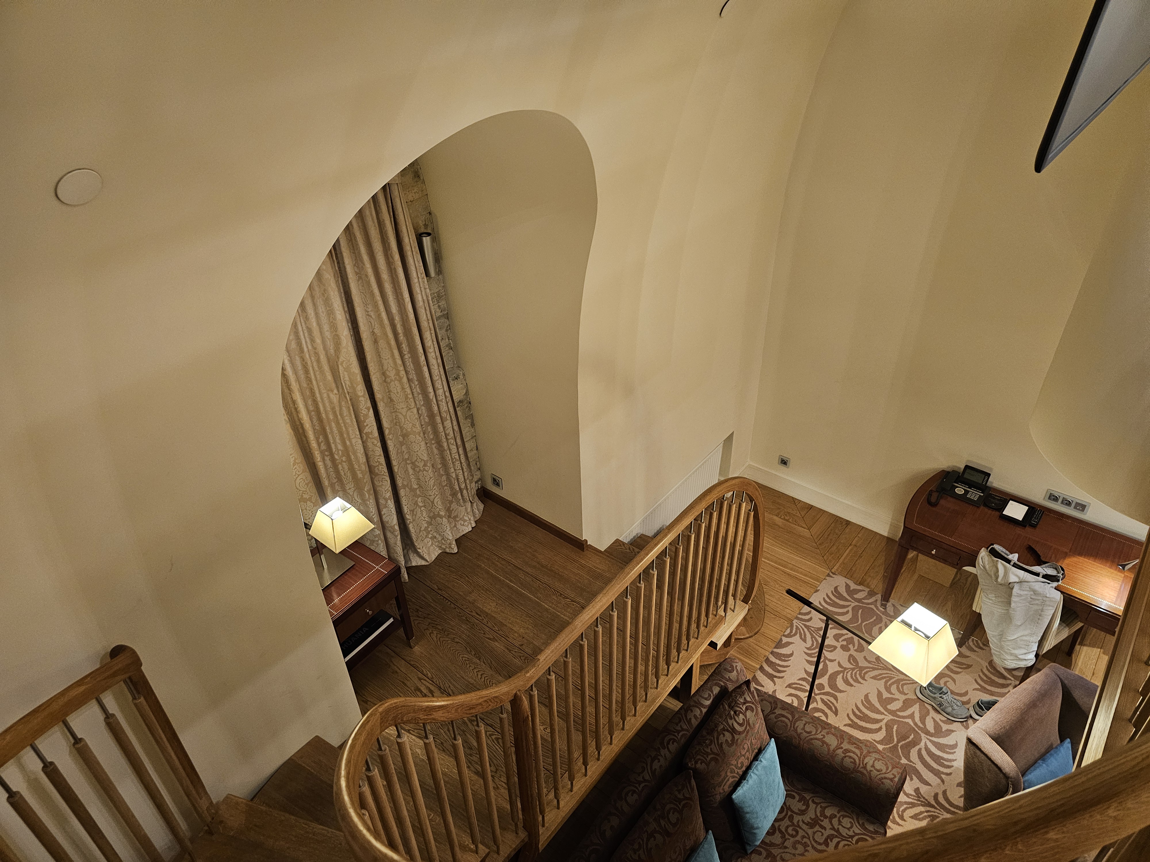 Vid ankomst till hotellet fick jag en välkomstdrink i form av sparkling wine. Dem frågade även om jag var okey med att ha ett rum med två våningar (Sir there is a stair, would that be okay for you?). Väldigt trevligt hotell där normalpriset på rum ligger mellan 130-160 EUR natten normalt. A La Carte frulle och riktigt trevligt spa i källaren.